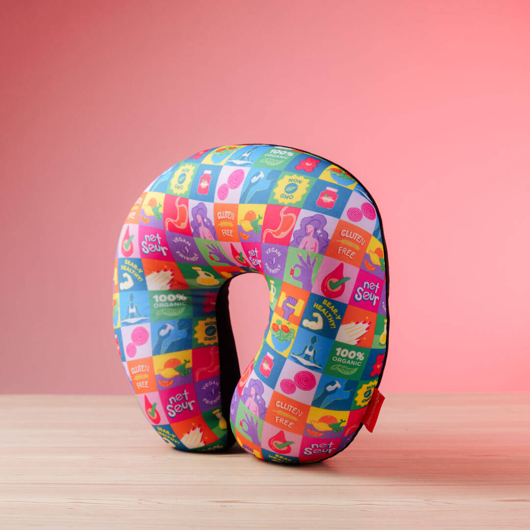 A limited edition stylish ergonomic neck pillow influenced by Keith Harring illustrations, curated by CiderInterns for Ciderbears.
